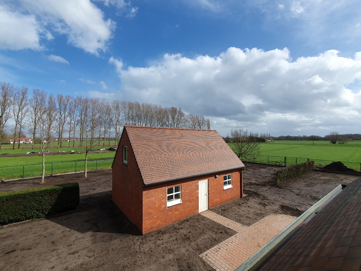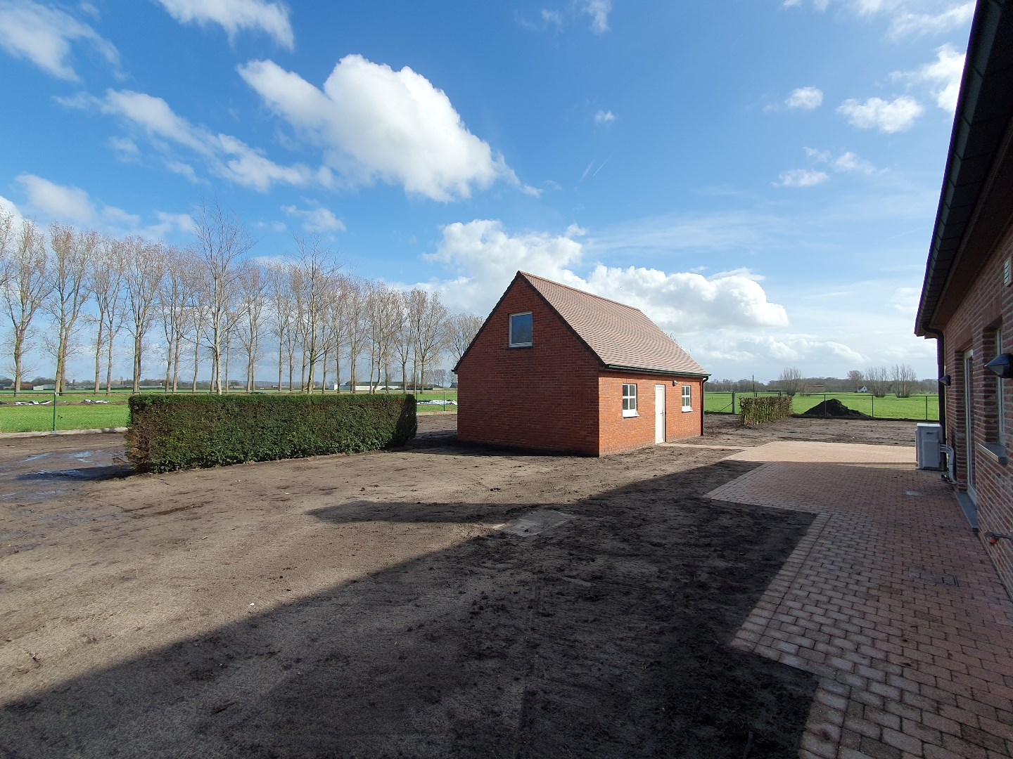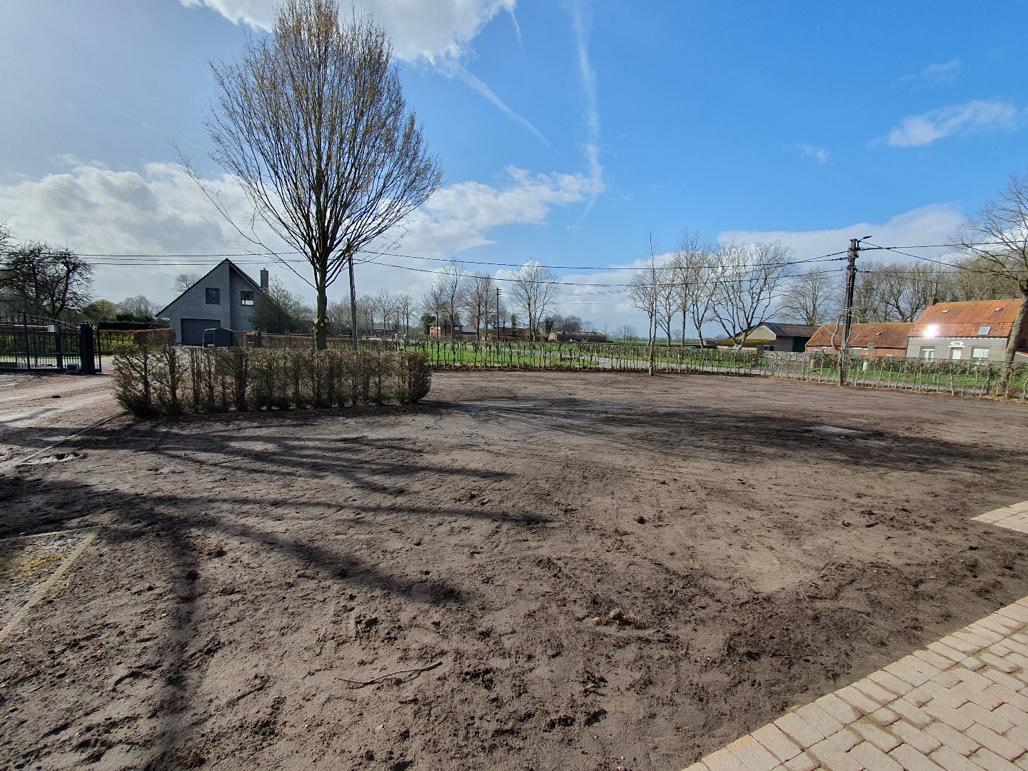 Het perceel rondom de woning werd recent genivelleerd en zal volledig ingezaaid worden. Zodat er een groot grasperk beschikbaar zal zijn.