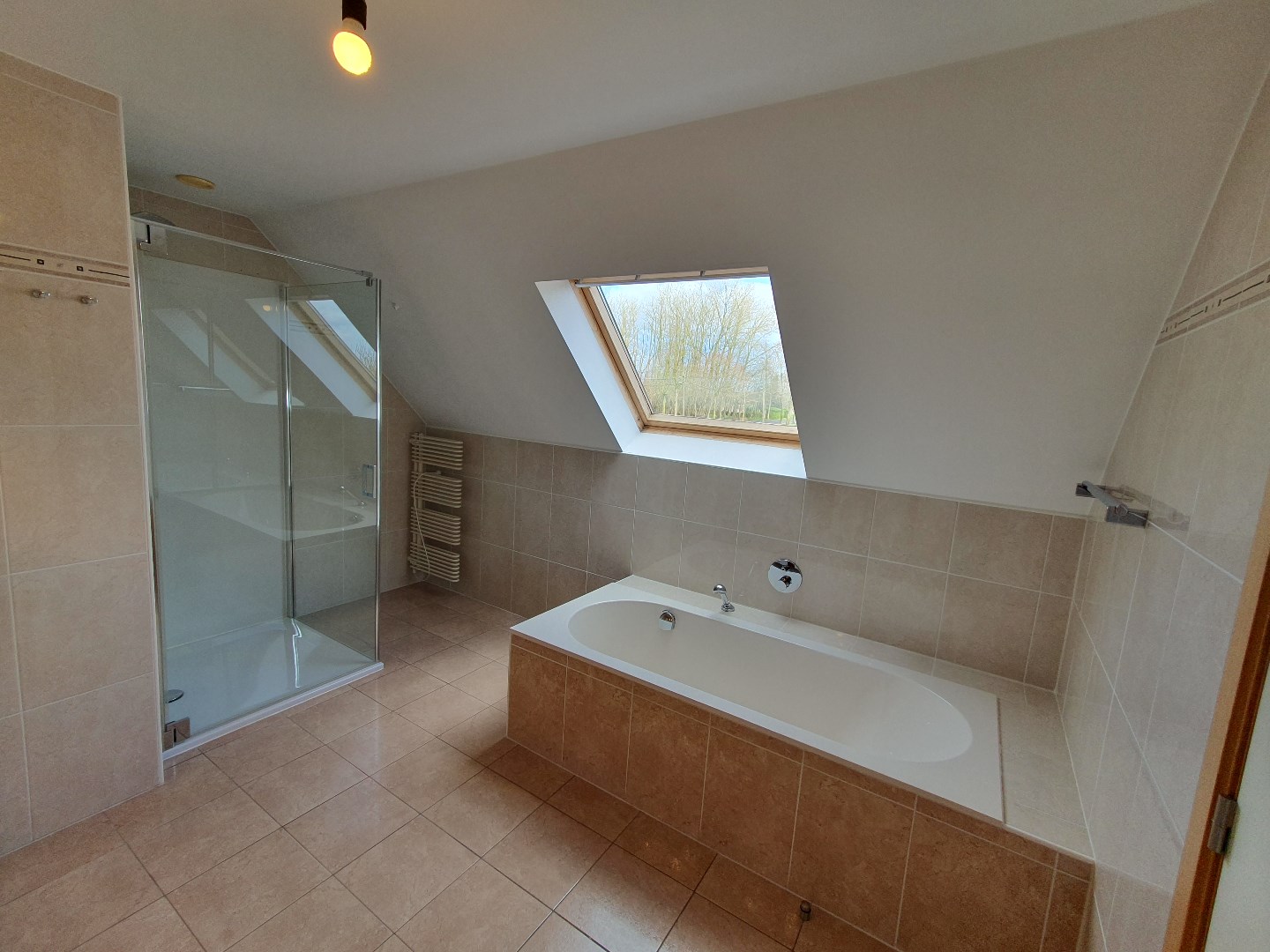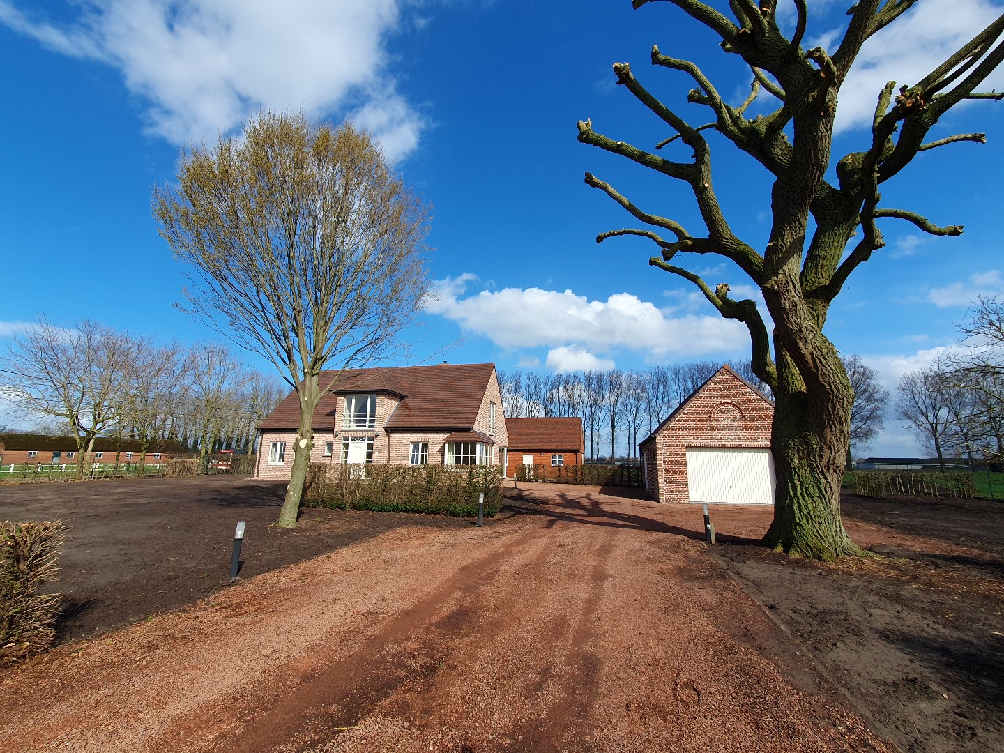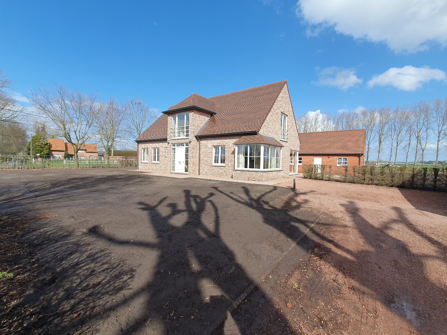 Het perceel rondom de woning werd recent genivelleerd en zal volledig ingezaaid worden. Zodat er een groot grasperk beschikbaar zal zijn.