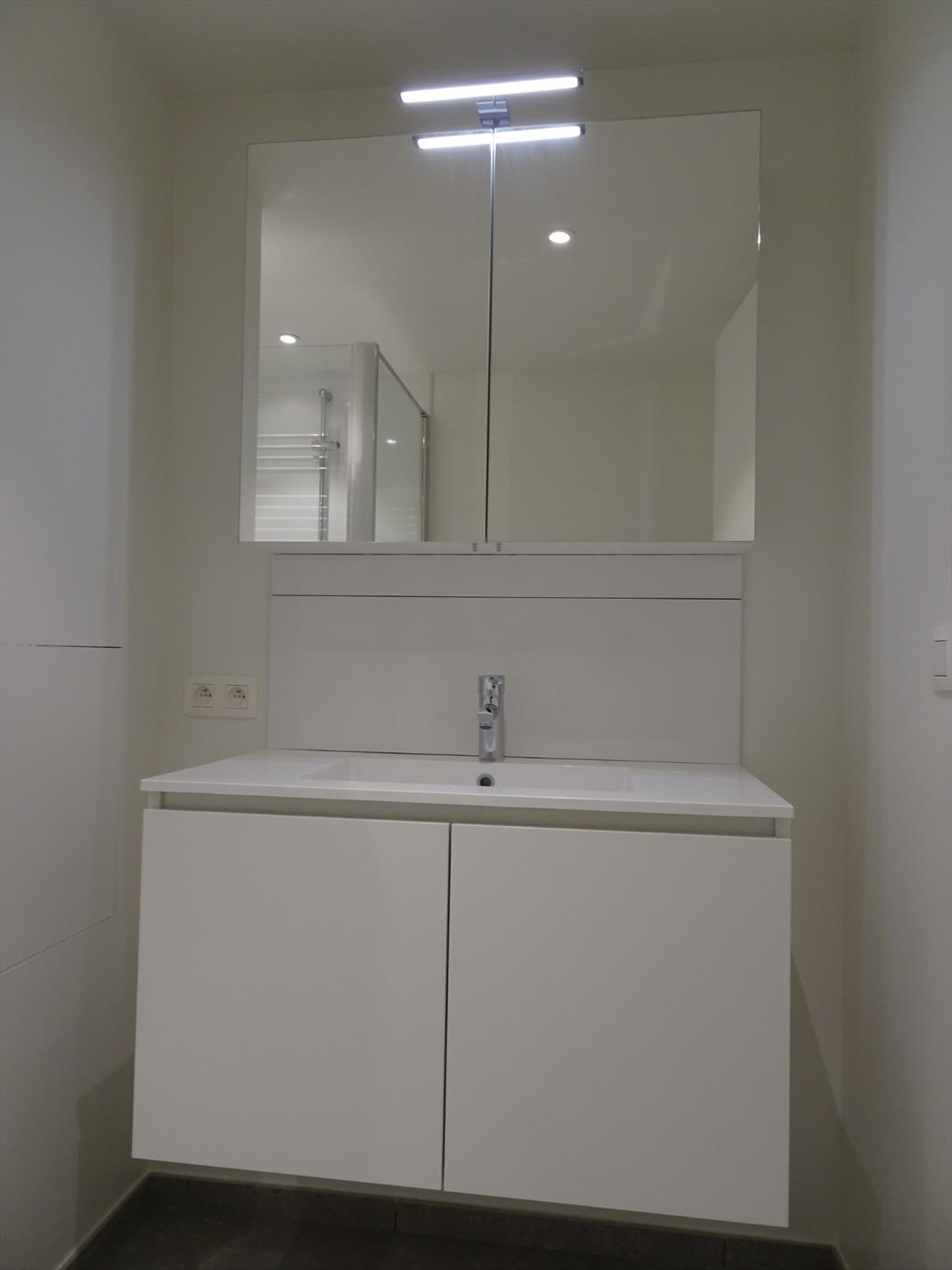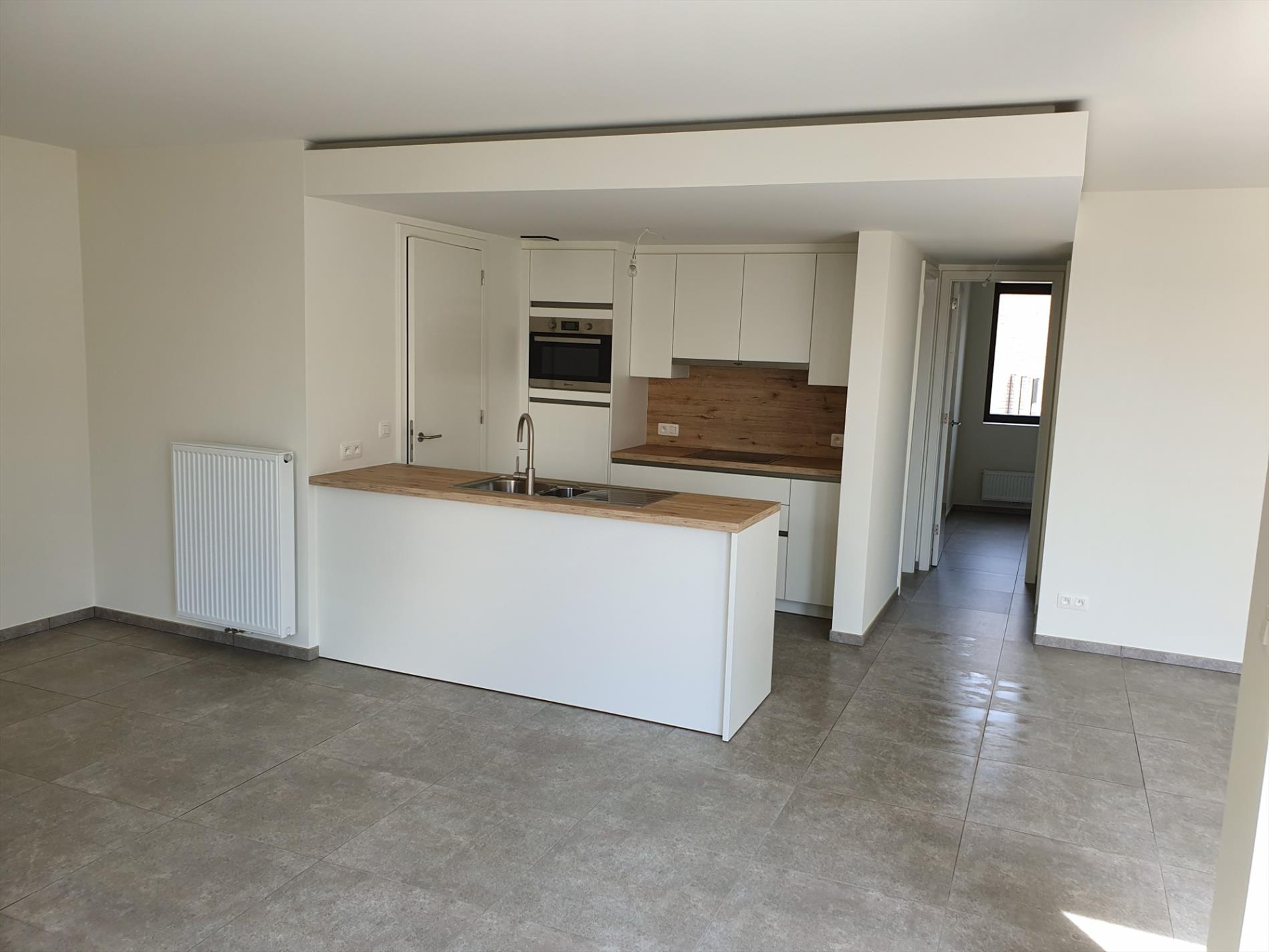 Deze woongelegenheid bevat een grote leefruimte met ingerichte open keuken (toestellen van Bauknecht) en 2 slaapkamers.