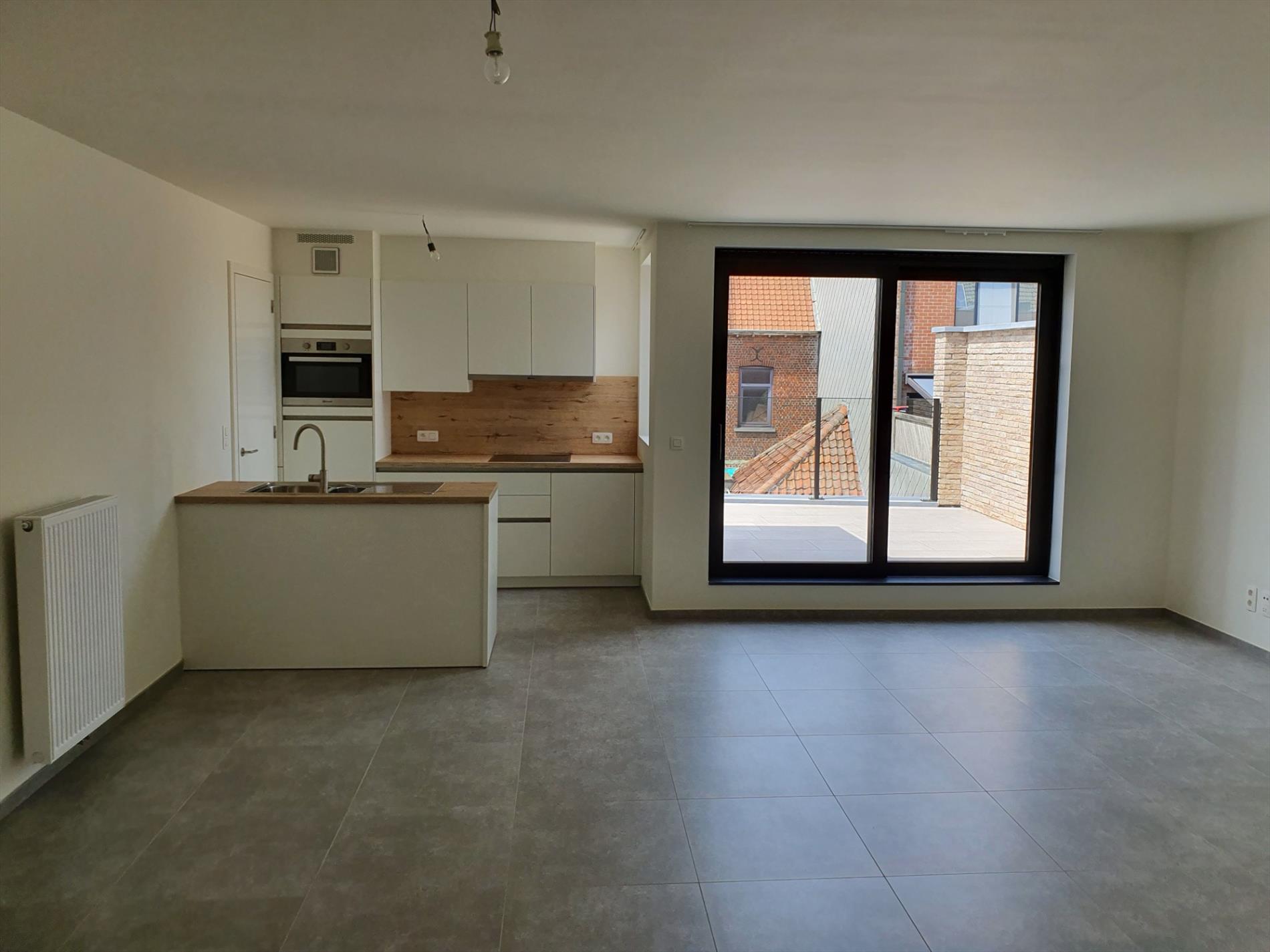 Deze woongelegenheid bevat een grote leefruimte met ingerichte open keuken (toestellen Bauknecht) en 1 slaapkamer.