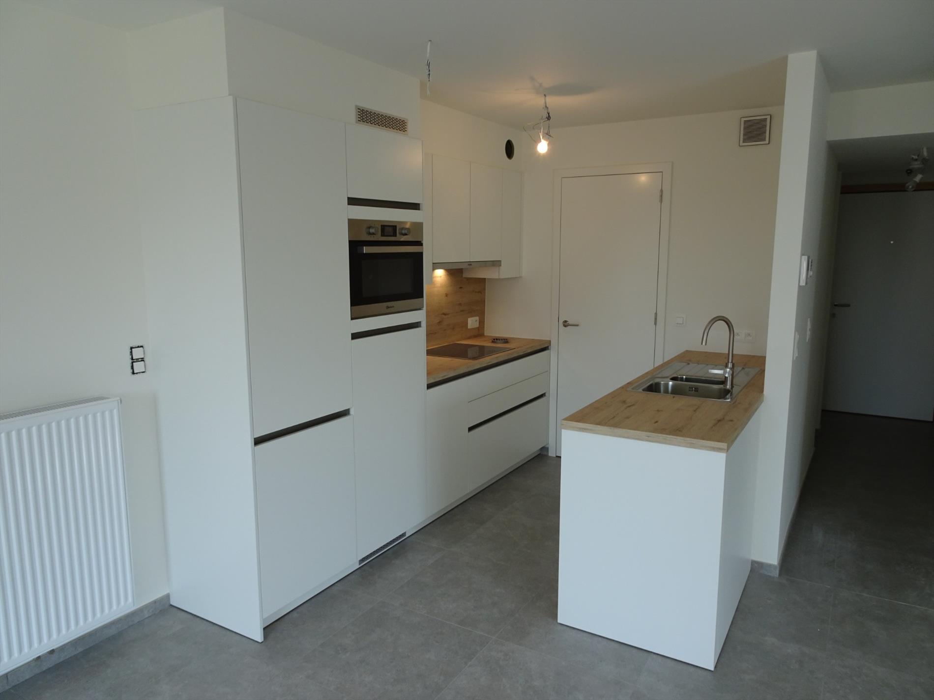 Deze woongelegenheid bevat een grote leefruimte met ingerichte open keuken (toestellen van Bauknecht) en 2 slaapkamers.