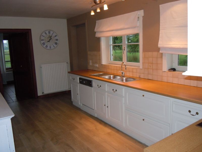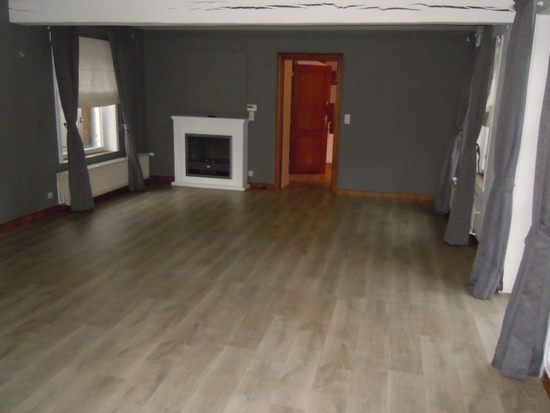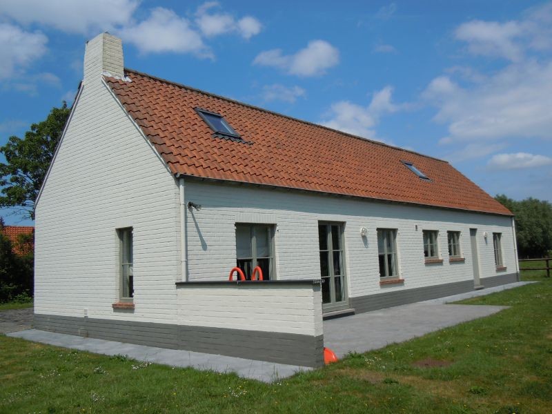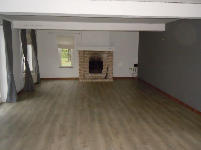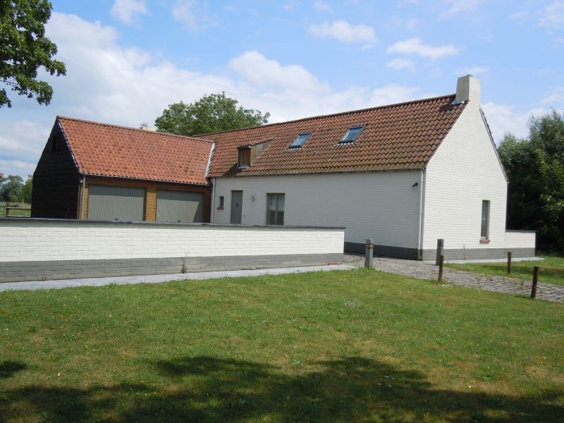 Gelijkvloers: Inkom, toilet, living/eetplaats met open haard, ingerichte keuken, ruime kamer, 2 garages