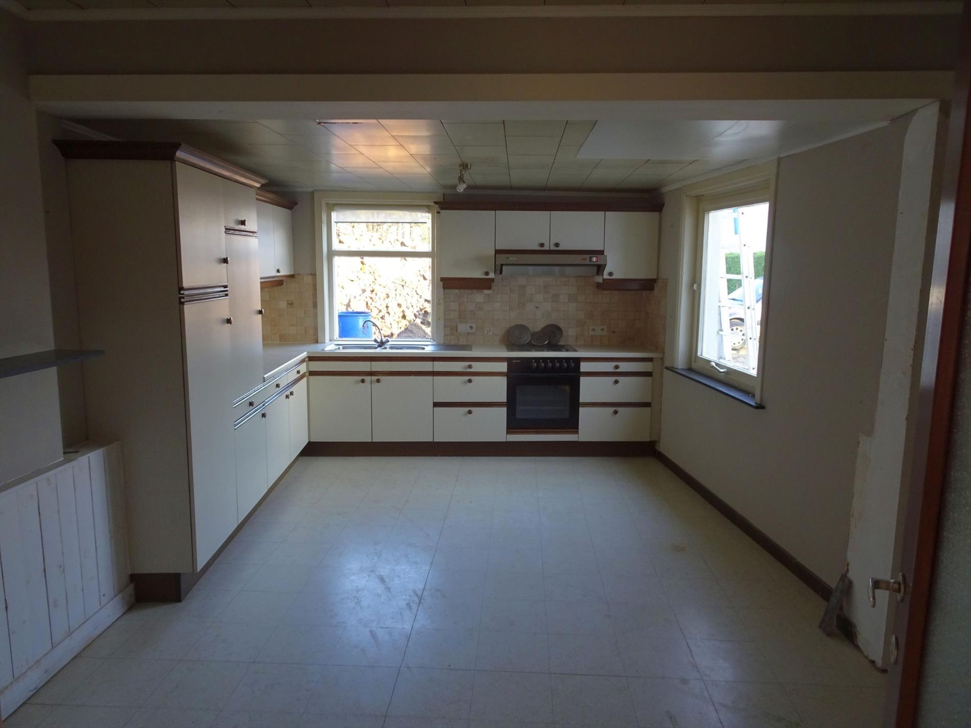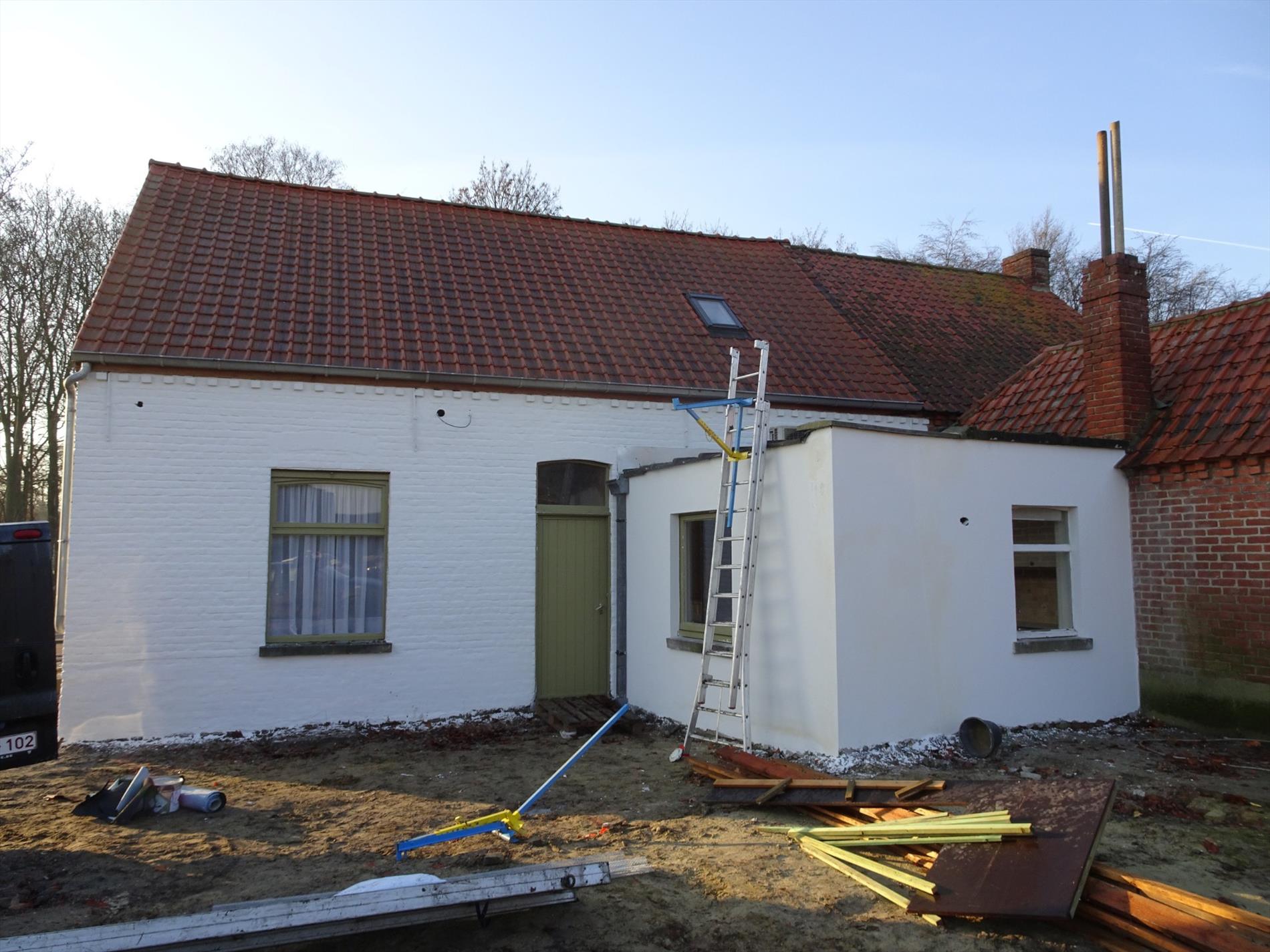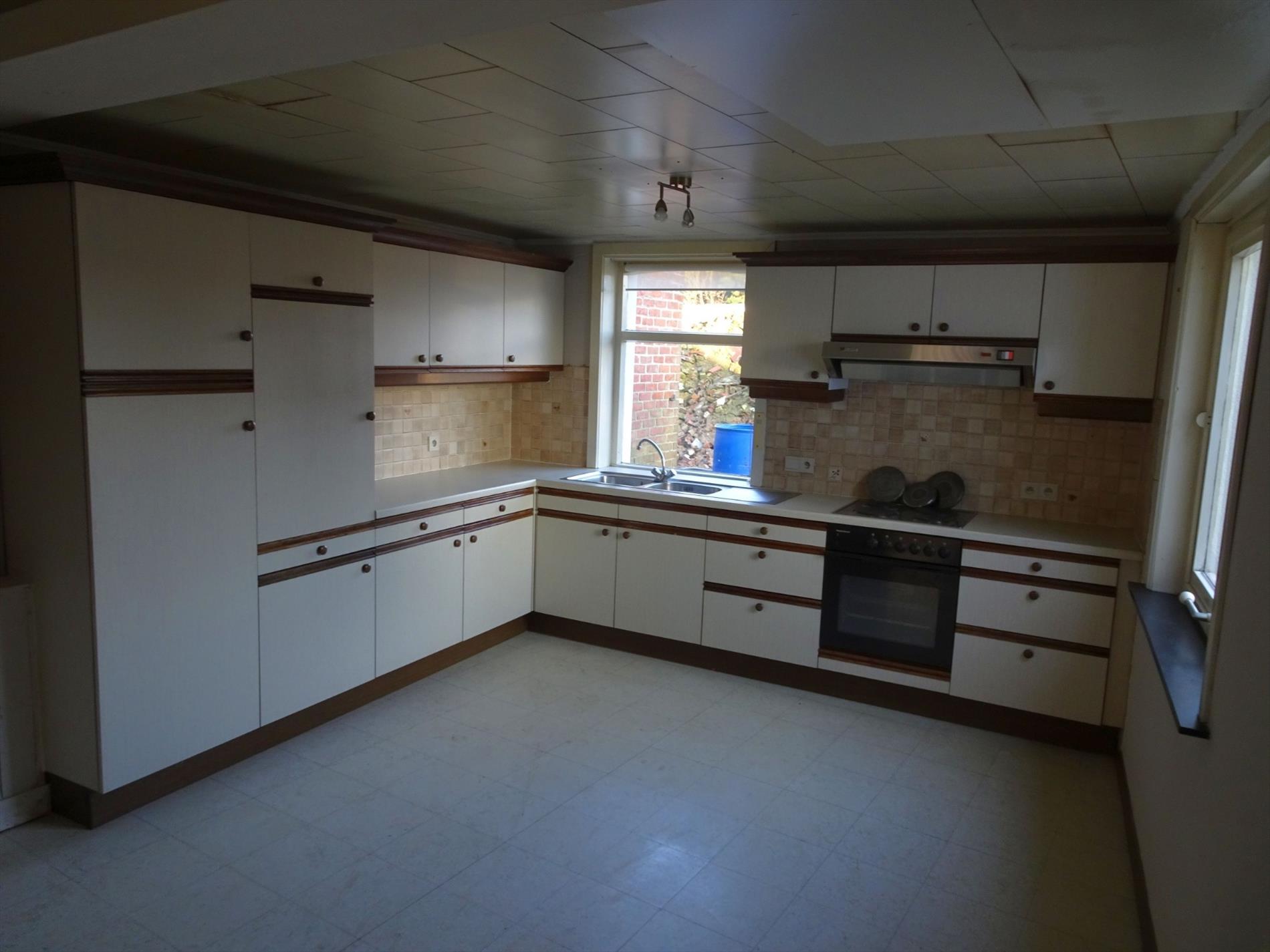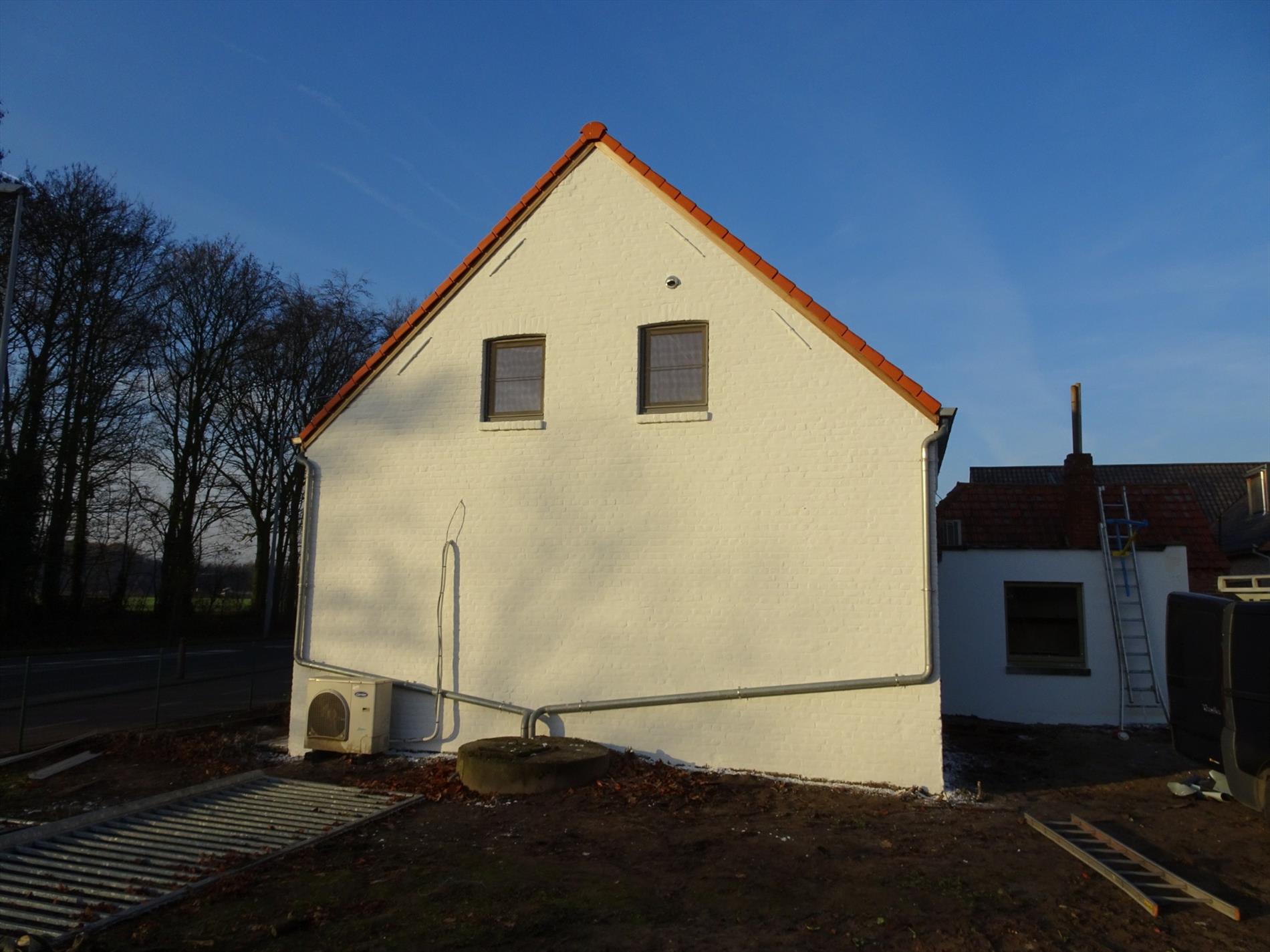 Indeling woning: Inkom, slaapkamer/bureel, living, aparte ruime keuken, kelder, toilet, trap naar 1° verdieping, 3 slaapkamers en een badkamer met ligbad en douchecabine.