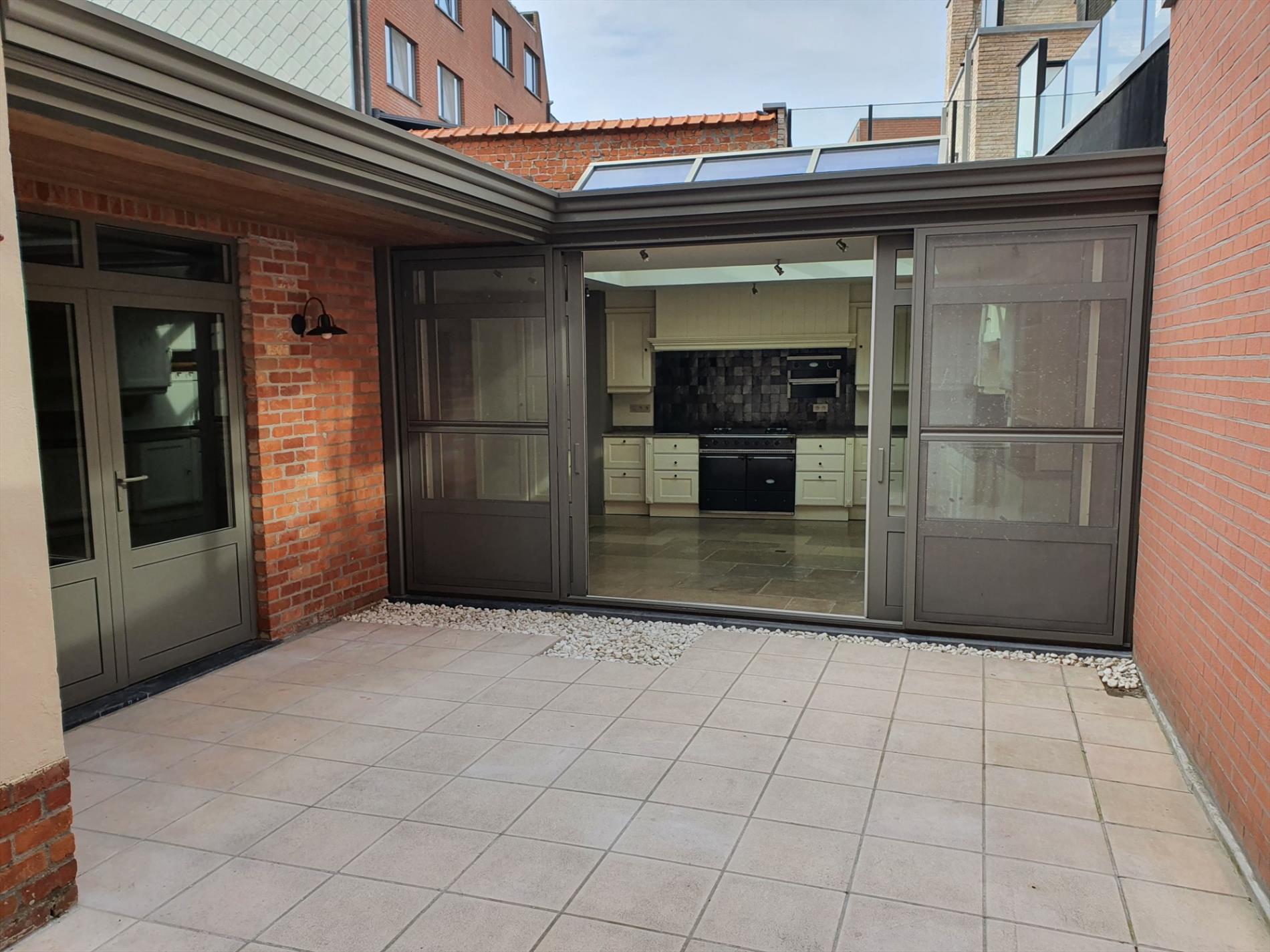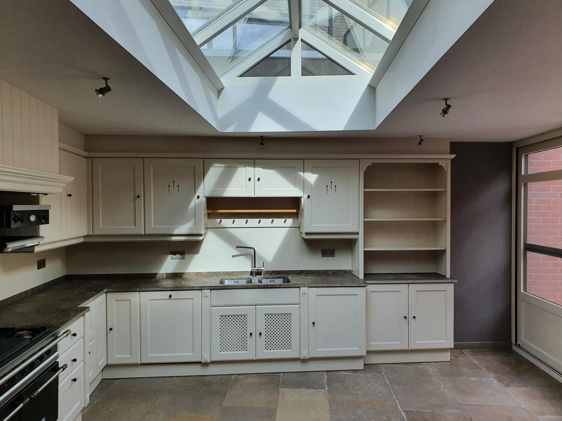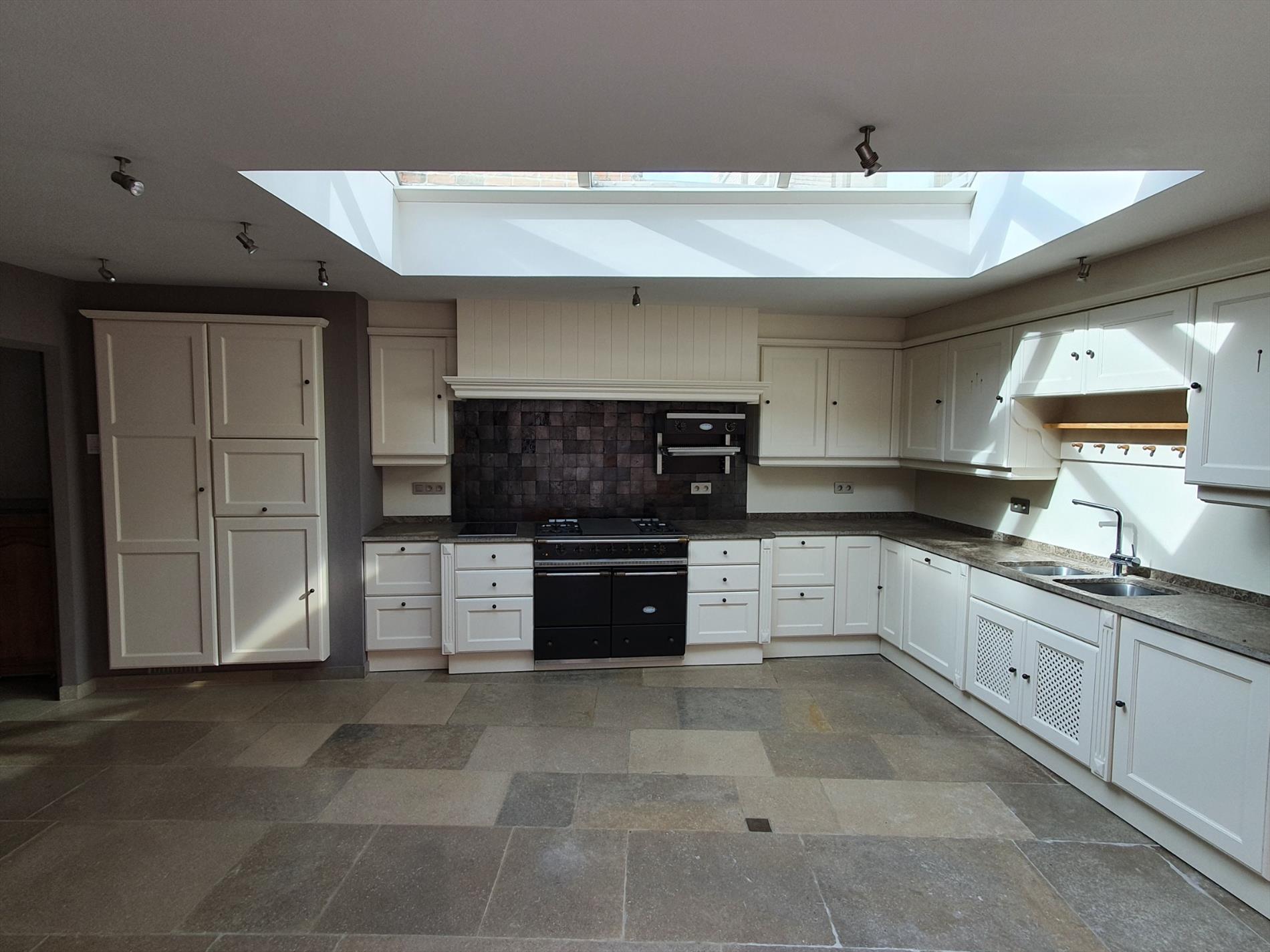 Achteraan de woning bevindt zich een recente, volledig ingerichte keuken (gasbekkens, inductiekookplaat, grilplaat, gasoven, heteluchtoven, ...)