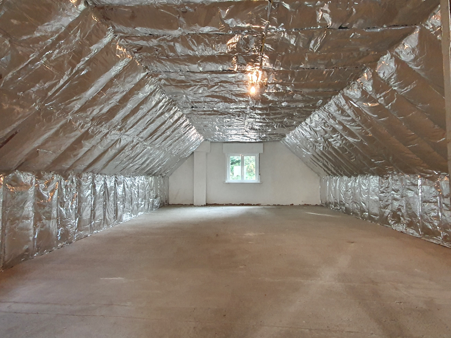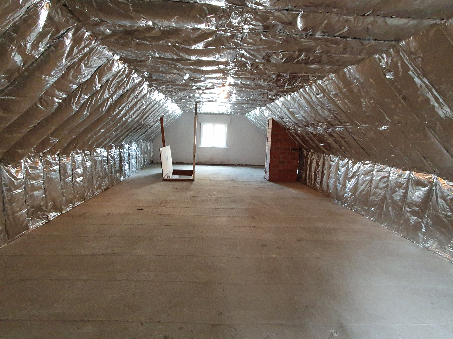 De eerste verdieping is één grote ruimte die dit jaar volledig geïsoleerd werd.