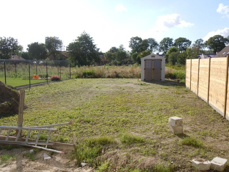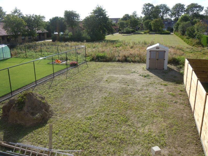 De tuin is zuidwest gericht en behoort tot de grotere percelen van de verkaveling.
