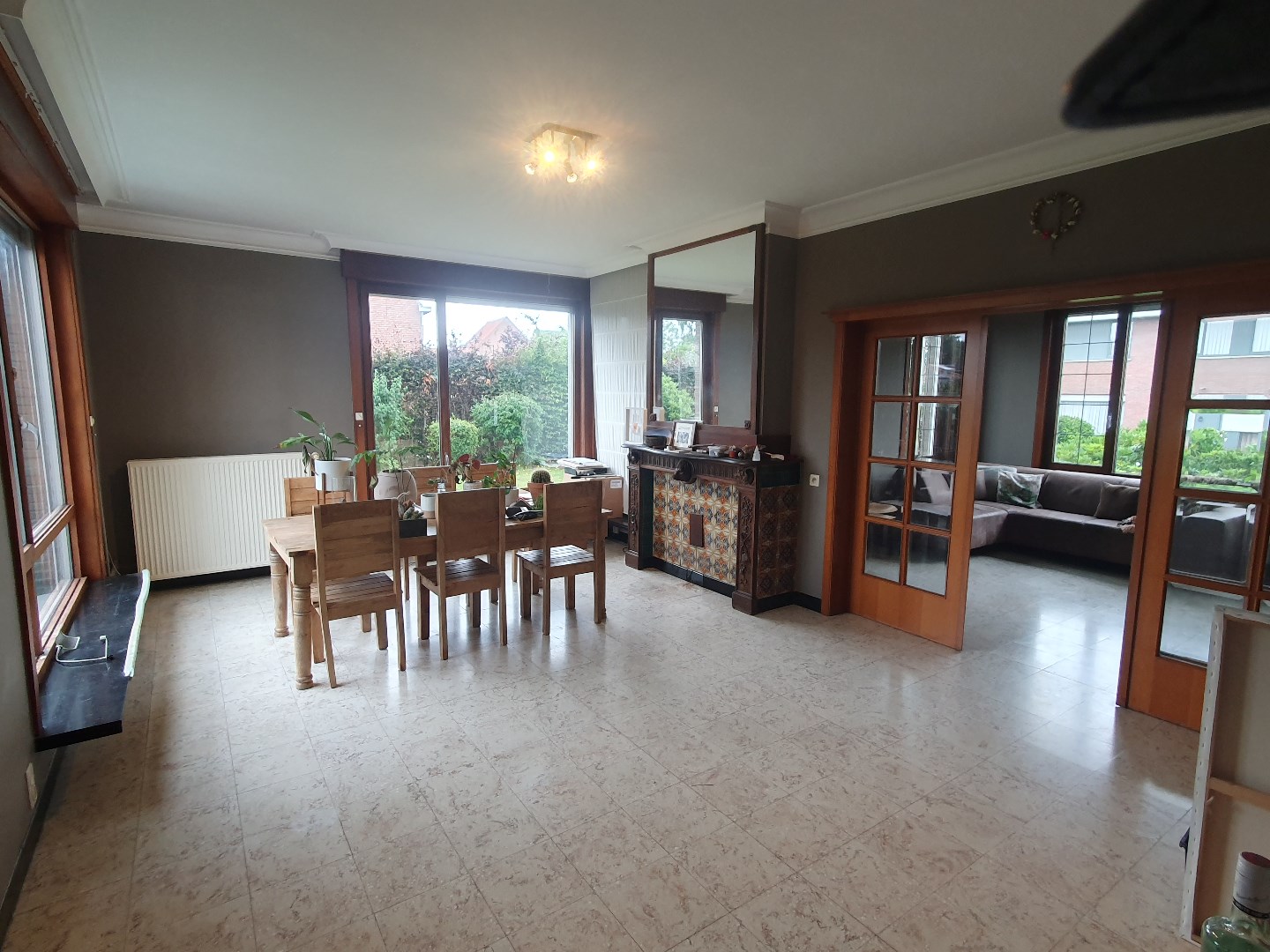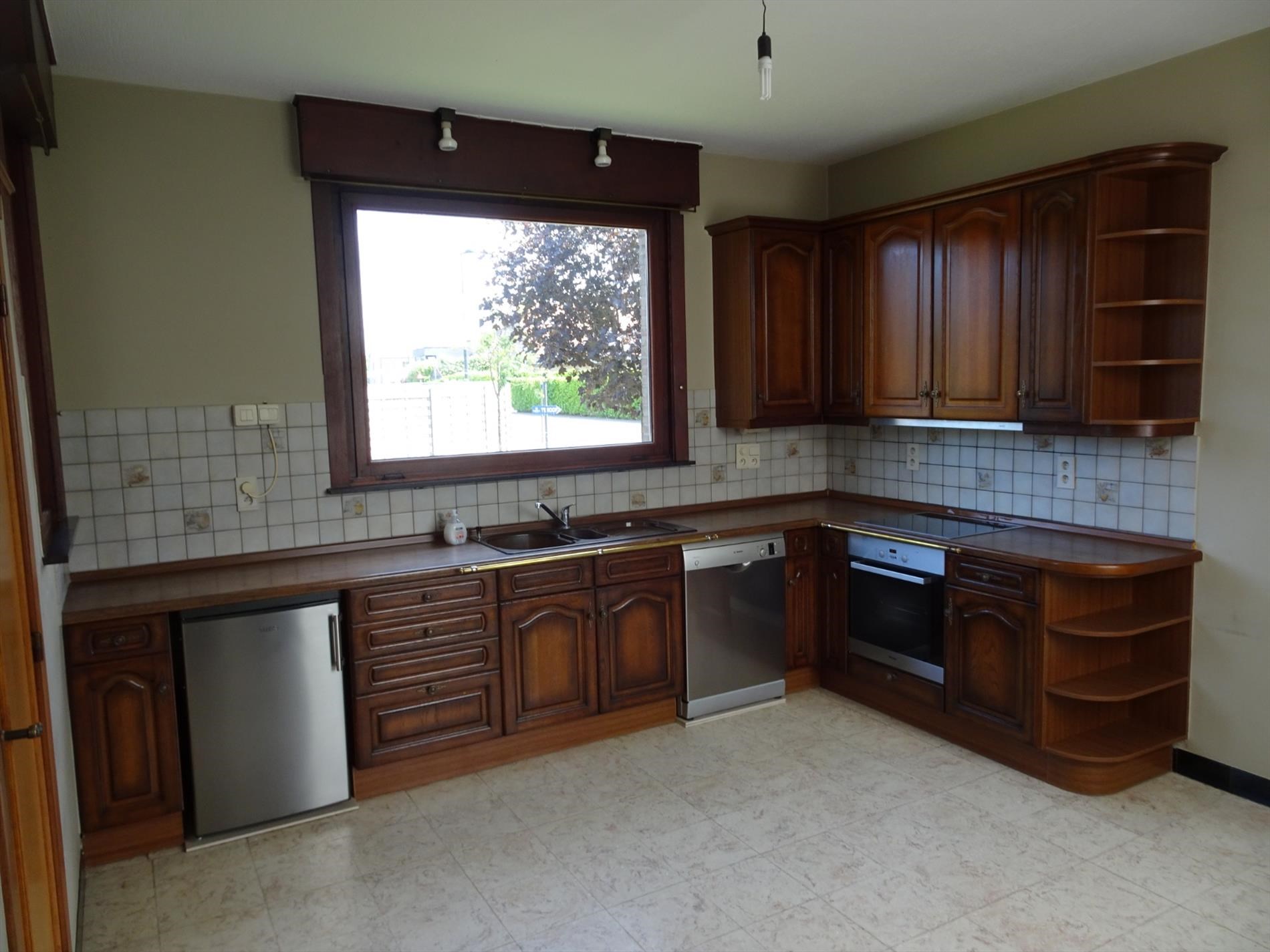 Indeling gelijkvloers: inkomhal, living/eetplaats, aparte ruime keuken met nieuwe ingebouwde toestellen, grote kelderruimte, apart toilet