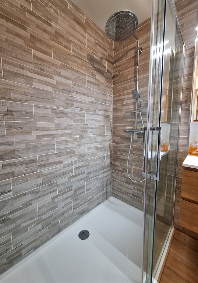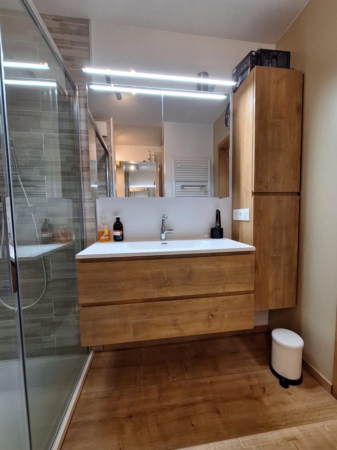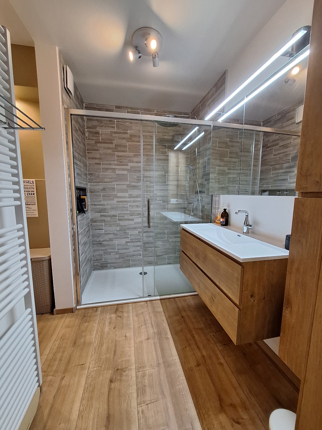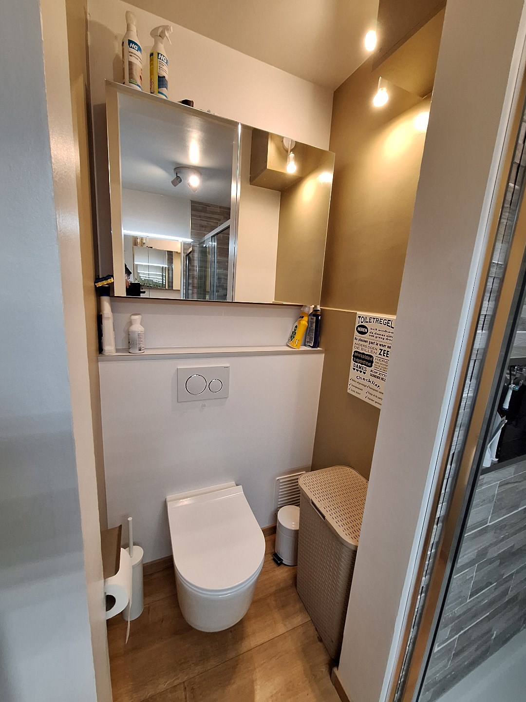 De badkamer bevat een grote inloopdouche en apart toilet.