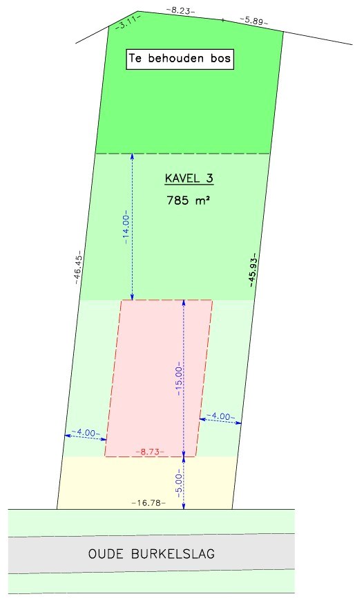 Met een straatbreedte van bijna 17 m, een perceeldiepte van 47 m is het een zeer ruim perceel met veel mogelijkheden en zonder bouwverplichting!
