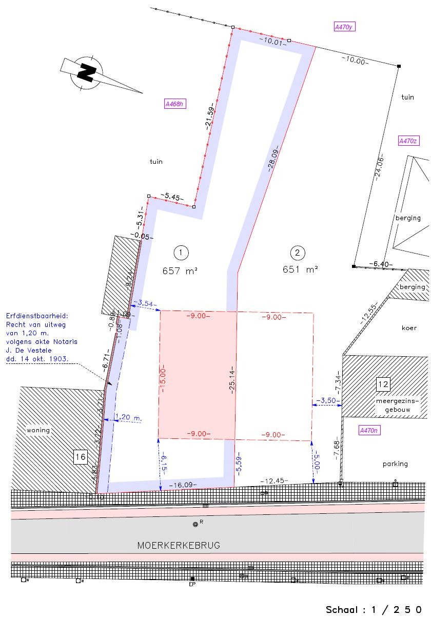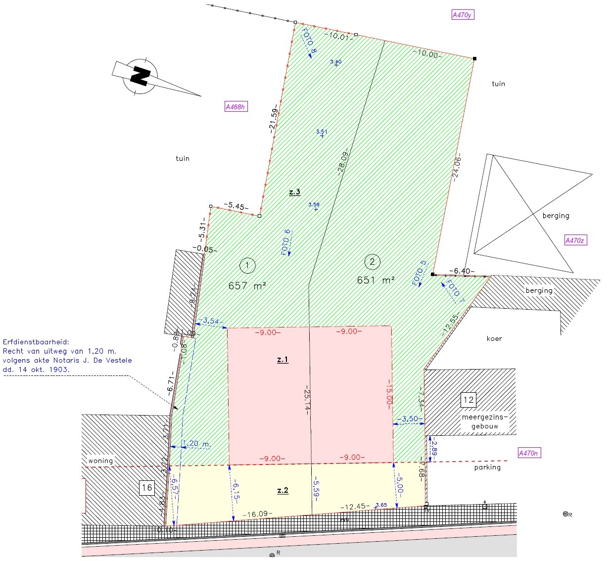 Lot 1 is vergund voor het oprichten van een ruime halfopen woning, met een gevelbreedte van 9 meter en een diepte van 15 meter! Twee volwaardige bouwlagen zijn toegelaten!