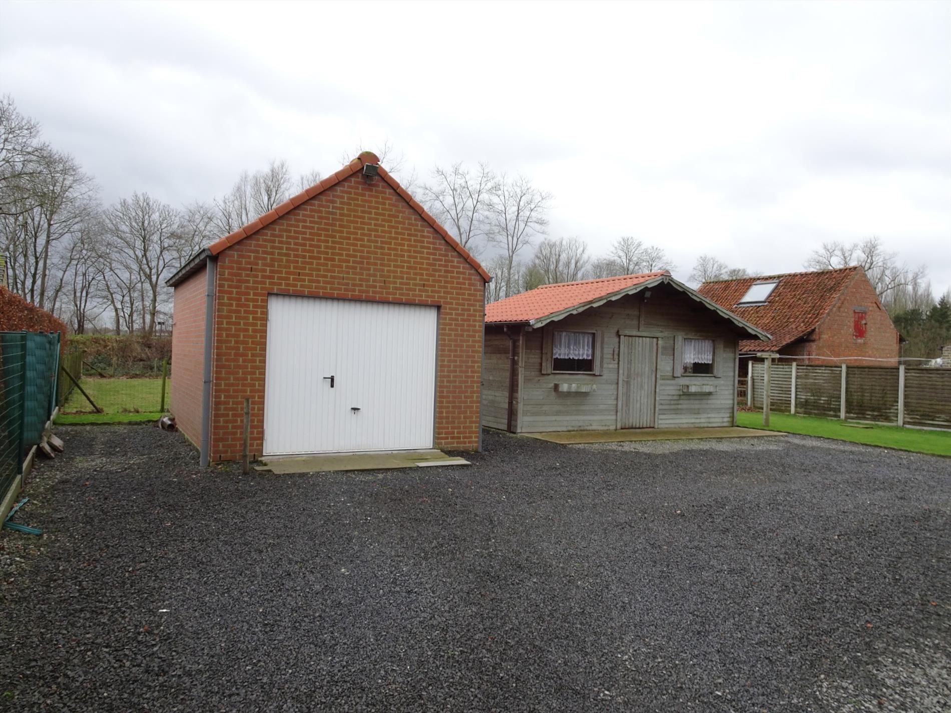 Achter de woning bevindt zich een garage en een groot tuinhuis (vergunning aanwezig).