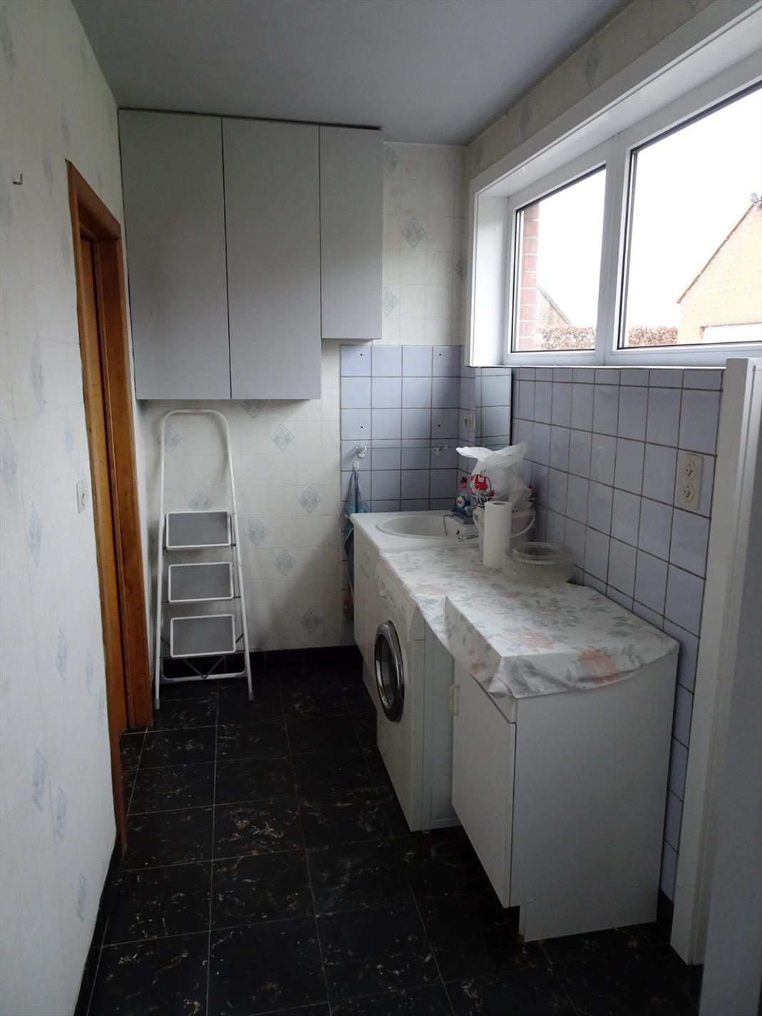 Indeling gelijkvloers: inkom, bureel/SLK, living en eetkamer, aparte keuken, koele berging