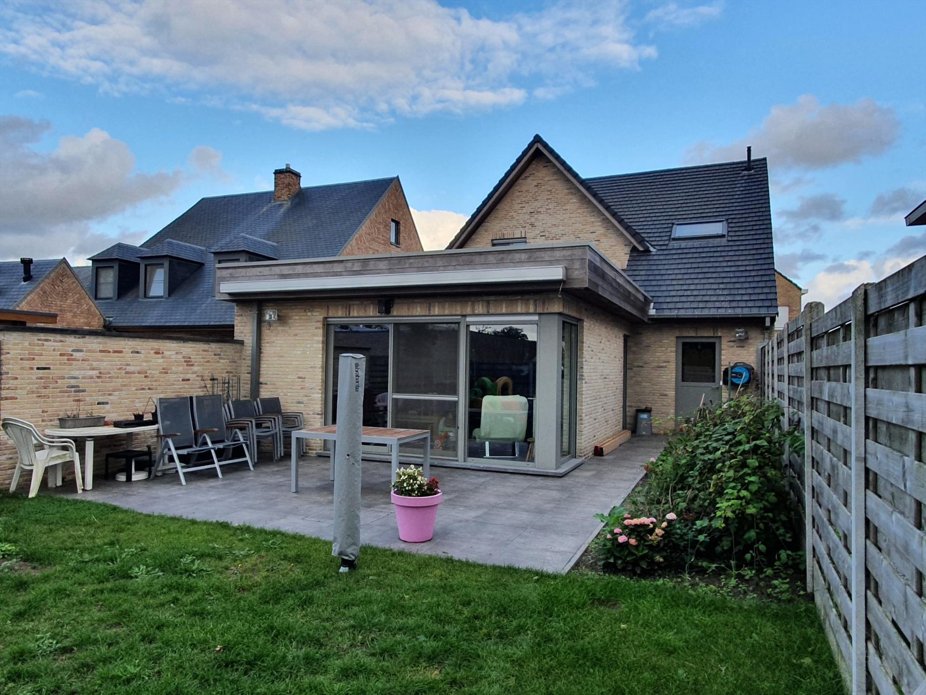 De tuin in aangelegd met een mooi terras en voorzien van een regenwaterput van 10.000 liter.