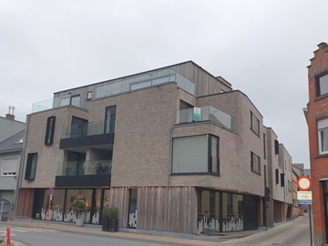 Indeling; Gemeenschappelijke inkom, trap naar 1° verdieping, private inkom, aparte ruime keuken, aparte badkamer met ligbad en toilet, living en eetplaats, aparte ruime slaapkamer, trap naar 2° verdieping, berging met aardgasketel, ruime zolderkamer. Het betreft een praktisch appartement in het centrum van Moerkerke.