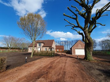 Deze unieke eigendom is gelegen op een groot perceel van 3.105m² en bevat een afgewerkte villa en 2 grote bijgebouwen. Het volledige domein is omheind en voorzien van een elektrische schuifpoort. Rechts vooraan de woning is er een grote garage met 2 parkeerplaatsen. Achteraan de woning bevindt zich nog een groot bijgebouw/tuinberging. Het perceel rondom de woning werd recent genivelleerd en zal volledig ingezaaid worden. Zodat er een groot grasperk beschikbaar zal zijn. Vanuit de woning is er prachtig uitzicht op de omliggende weid …